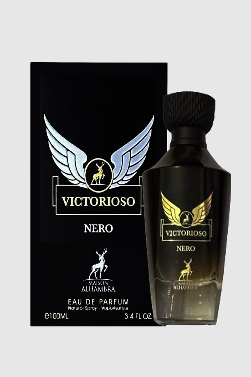 - Alhambra Victorioso NERO presents a triumphant scent designed for men, available in a 100 ml size, inspired by Invictus Victory.