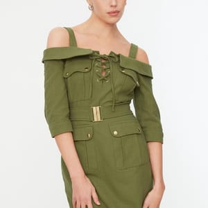 Trendyol 5516967% OFFModel Measurements: Height: 1.78, Bust: 82 Waist: 62, Hips: 89The product on the Model is size S/36.100% Cotton, Woven FabricLength 90 cm from the shoulder