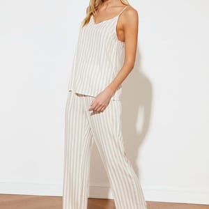 Trendyol 4515571% OFFRibbed Cami Top & Pyjama Set is a cool set of clothing for women. The material of the product is 98% Polyester 2% Elastane.Model Measurements are as follows: Height: 1.78, Bust: 83 Waist: 60, Hips: 90Size Worn By Model: S/36/1 but other sizes are also available.