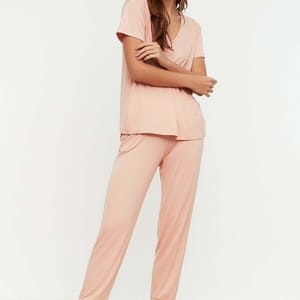 Trendyol 4918574% OFFLace Detail Top & Pyjama Set is a comfortable and popular set of clothing. The material of the product is 94% Viscose 6% ElastaneKnitted Fabric